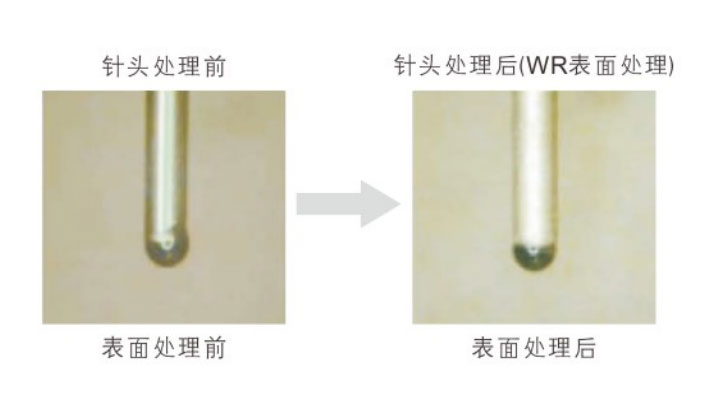 精準點膠的秘訣在于抑制出膠量不均,材料拉絲,前 端爬膠等現(xiàn)象,進一步實現(xiàn)高品質(zhì)的點膠。 在點膠針頭前端及內(nèi)徑進行特殊材料的表面處理,可 以實現(xiàn)更精準的點膠。請依照使用目的與用途來選擇 表面處理的種類。